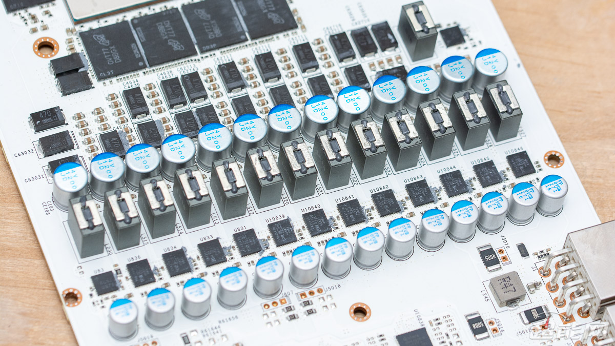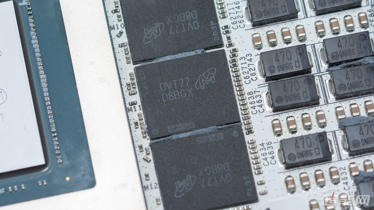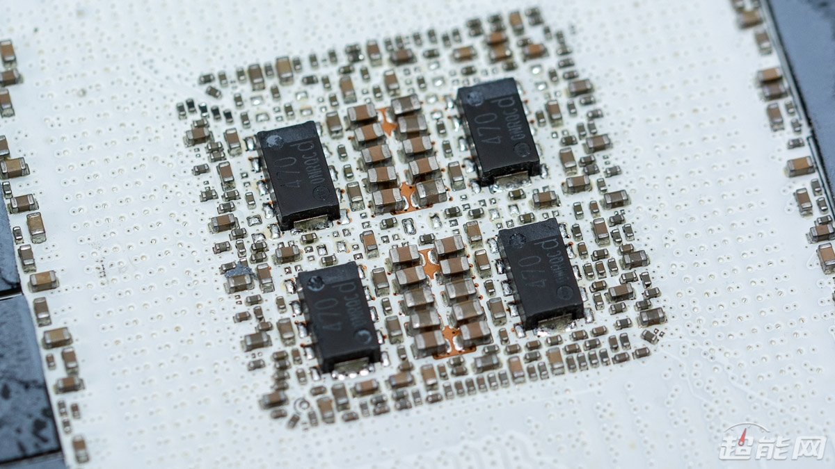 GPU背面采用4颗容量为470μF的聚合物电容以及2组MLCC陶瓷电容的组合