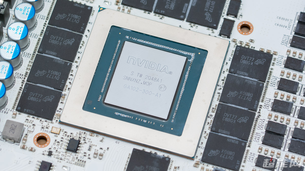 显存为美光的GDDR6X,单颗容量为1GB,24颗总规格为384-bit 24GB