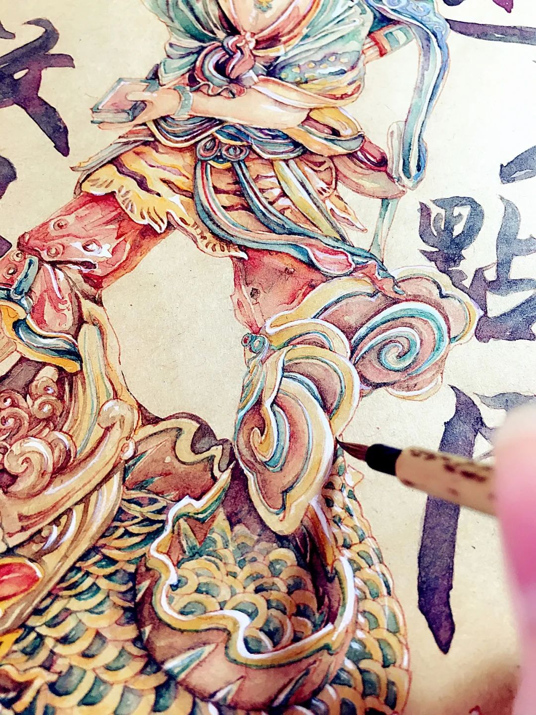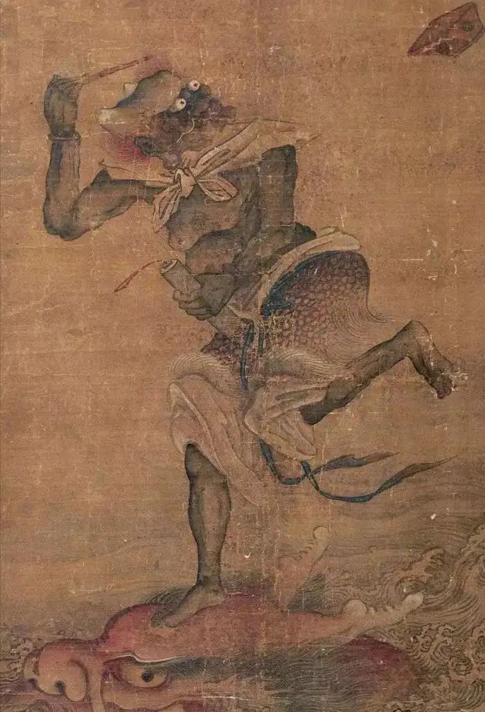 上面的“纮、彤、躬"组成了“鬼”字形象,加上"斗"恰是"魁"字。魁星,赤发蓝面,翘足,捧墨斗,执朱笔,立于鳌头之上,远望北斗星。
