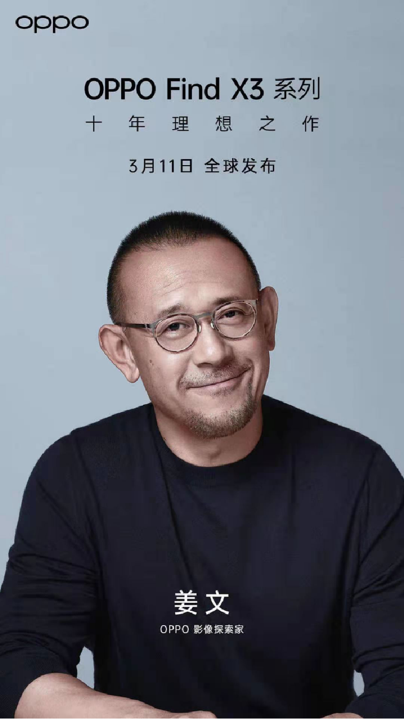继昨天 3 月 1 日公布了 Find X3 系列的发布会时间后,在 3 月 2 日上午,OPPO 官方再次发布了一则预热新海报。从海报中,我们可以看到一位熟悉的知名导演——姜文,此次姜文将作为 OPPO 的影像探索家,与大家探索 Find X3 系列的影像实力。作为知名的导演,姜文对于电影拍摄和电影的色彩都有着底蕴的实力,这次邀请姜文作为 Find X3 系列的影像探索家,这或许在暗示Find X3 系列的影像实力不一般,下面就让我们一起来看看吧。