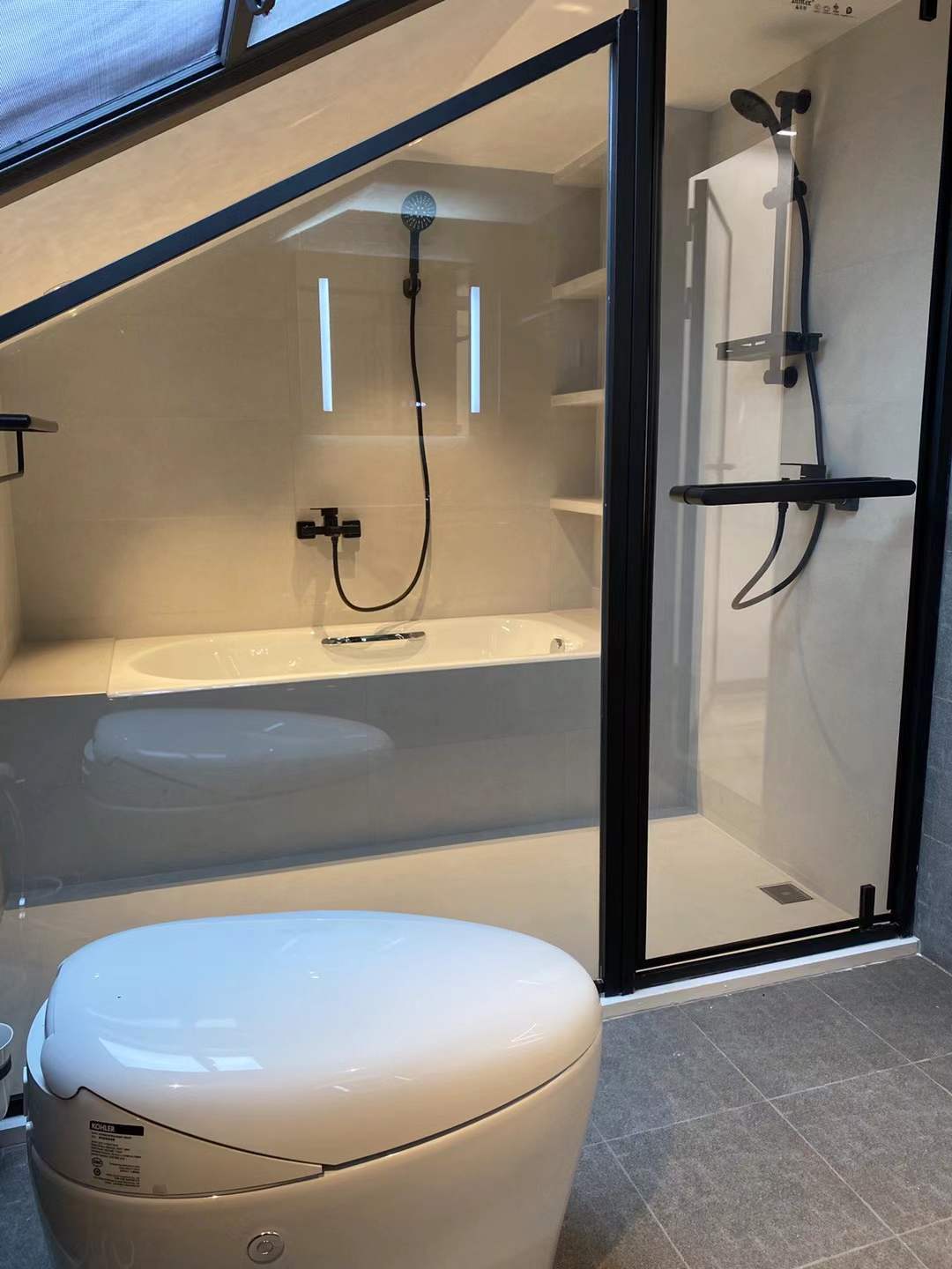 二楼的卫生间用了浴缸,浴缸和壁龛是一体化的,用起来也方便顺手。墙砖铺贴的是波纹砖,这样看上去更有立体感,卫生间和厨房都用的是砖夹工艺。