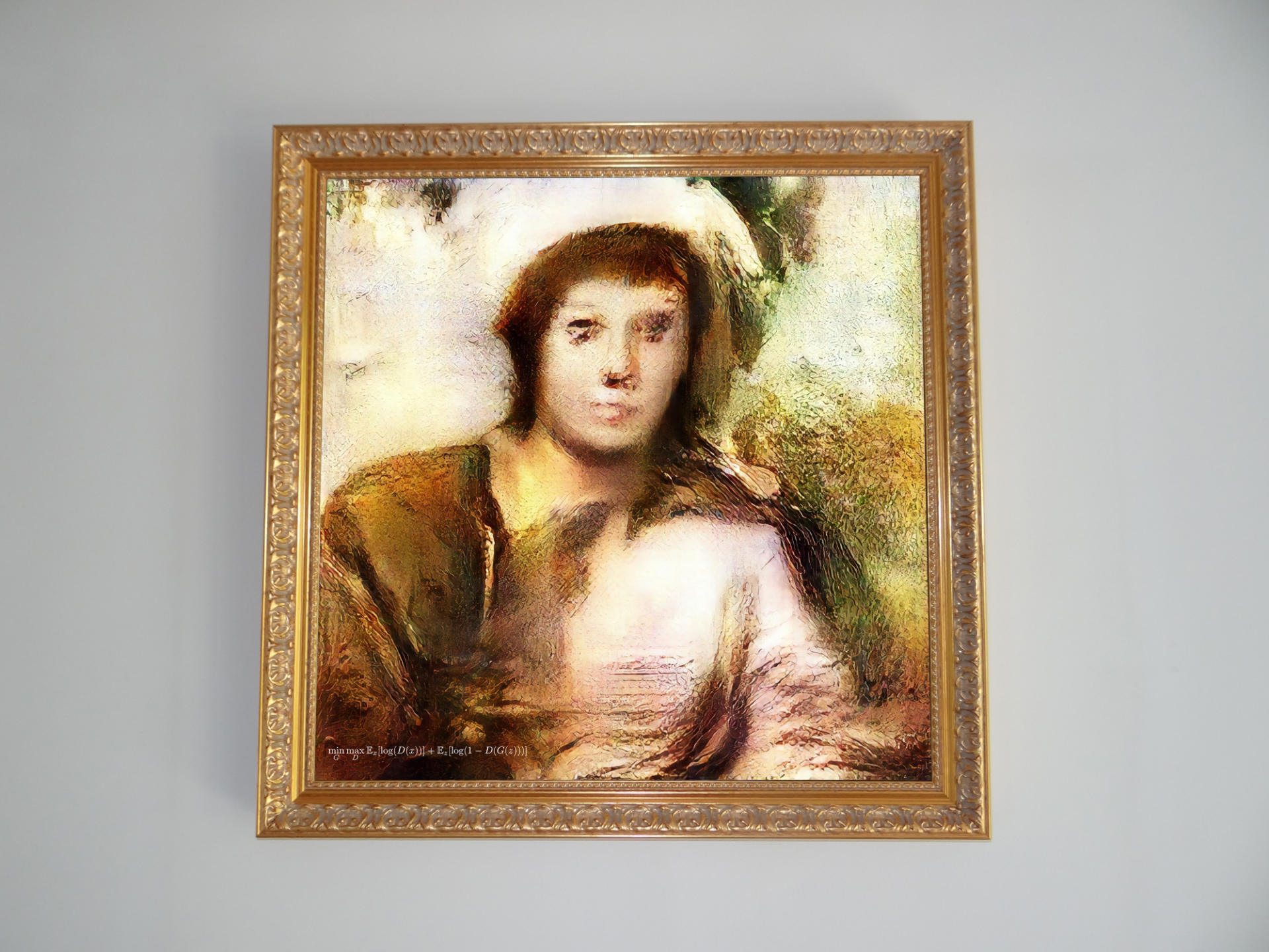 2018年10月25日,世界首次由AI(artificial intelligence)创作的画作《埃德蒙·贝拉米画像》(Portrait of Edmond Belamy)在著名艺术品拍卖行佳士得拍卖会上,拍出了43.25万美元 (约300万人民币)的价格并成交。