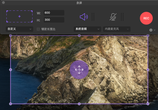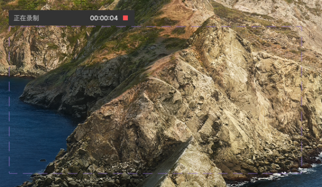 第二步:你可以点击工具栏中的屏幕图标来记录整个屏幕,或者点击虚线框来记录Mac电脑上的一个区域。