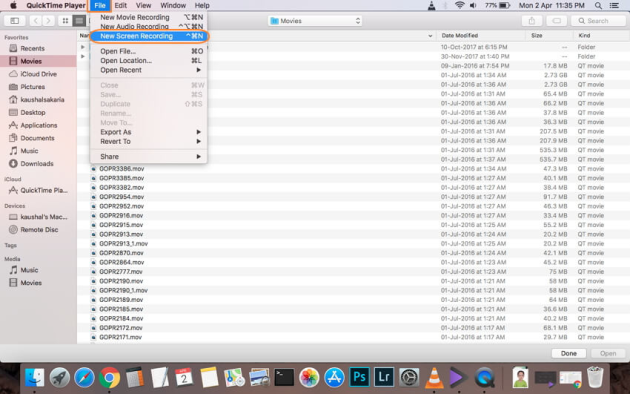 步骤1:在你的Mac系统上打开QuickTime播放器应用程序。选择文件>新建屏幕录音。