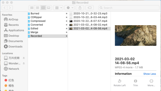 录制过程结束后,万兴优转将在主界面显示录制的视频。您可以右键单击录制的视频以在您的计算机上定位它。此外,您可以添加录制的视频到视频编辑器,DVD刻录机和更多的进一步操作。