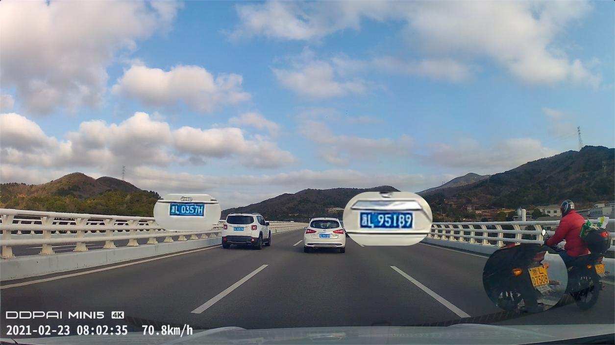 ADAS是不少高端行车记录仪的标配,在实际使用时,70迈A800的ADAS系统能智能识别道路环境,并在恰到的时间准确语音提示前车碰撞、前车起步、车道偏离等信息,同样,盯盯拍mini 5也同样支持ADAS智能驾驶辅助,但在同时开启两款记录仪ADAS智能驾驶辅助后,遇到汽车压线时,70迈能更及时地提示车道偏离,相比盯盯拍 mini5更为灵敏、准确。