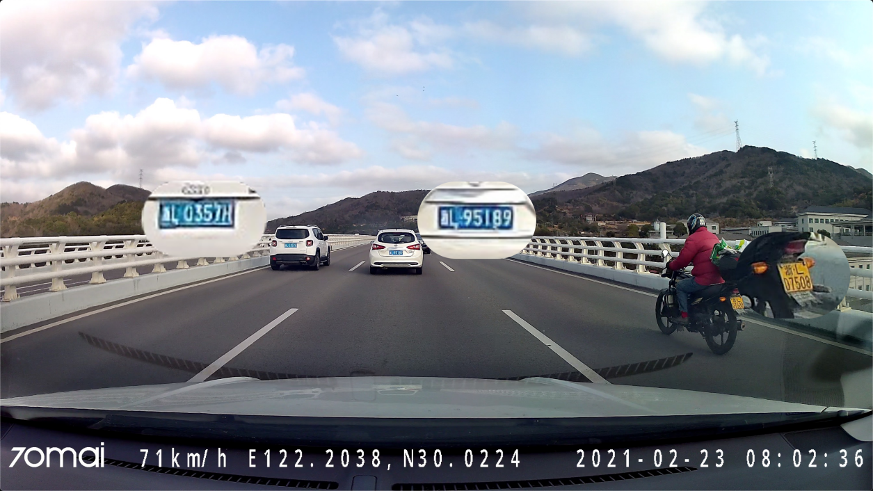 可以看到,尽管70迈A800的后录摄像头采用了1080P规格,但依旧保持了较高清晰度。显然,多了一个后录视频能帮助我们更好地记录行车过程,尤其是针对发生在后方或后侧方的事故,显然能为汽车生活增加一重保障。