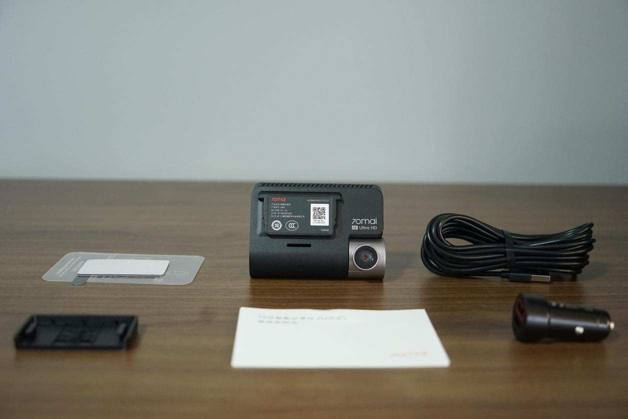 拆开各自包装后可以看到,70迈4K智能记录仪A800里有记录仪主机、支架、双口车充、电源线、静电贴×2、耐高温胶、说明书等。
