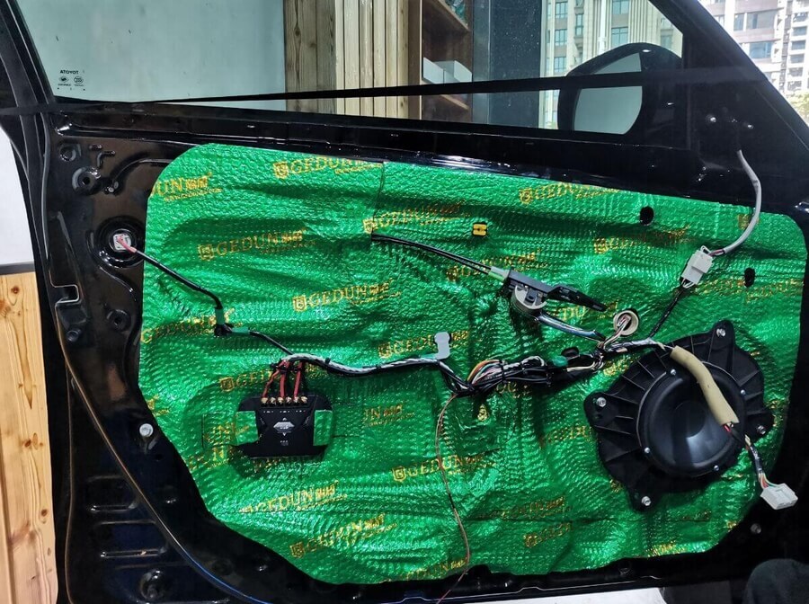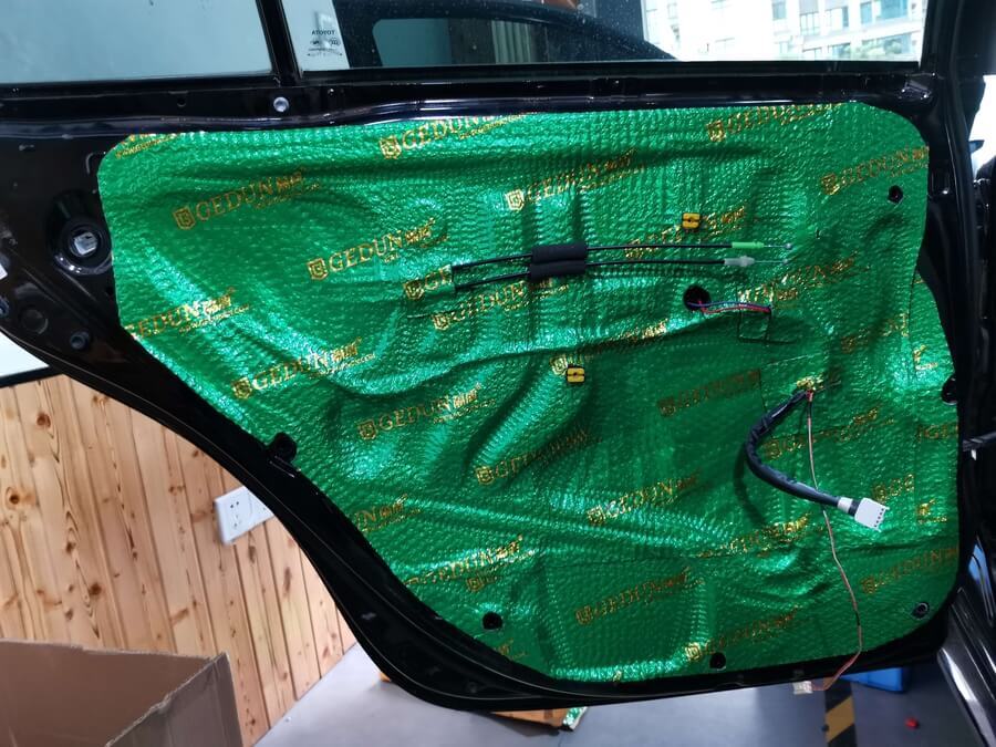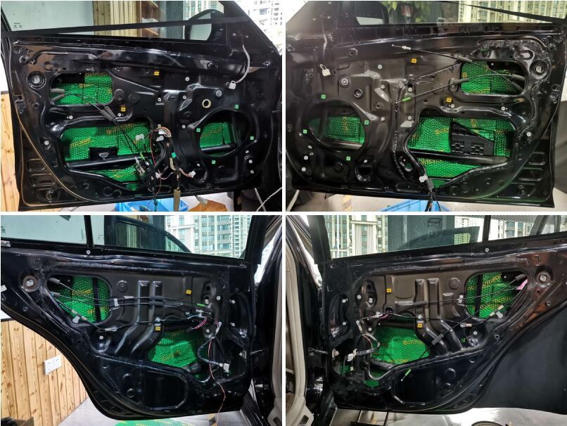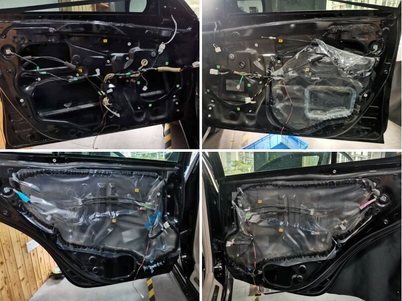 车门隔音方案我们选用的是标准的双层隔音,这样既可以增强钣金强度减少车门共振,还能将车门密封起来,减少风噪入侵,同时为声场喇叭的工作提供一个良好的工作环境。