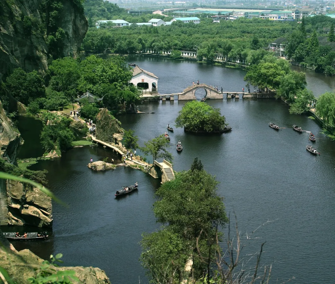 东湖虽然称“湖”,但却是一个由崖壁、岩洞、石桥、湖面巧妙结合成的景点,构成了罕见的“湖中之奇”。据说,东湖所在的地方原来只是一座青石山,后来,人们将这里当作石料厂开始刀劈斧削地凿山采石,逐渐就形成了高达50米的悬崖峭壁,又经过人工围筑,才最终成了现在巧夺天工的样子。