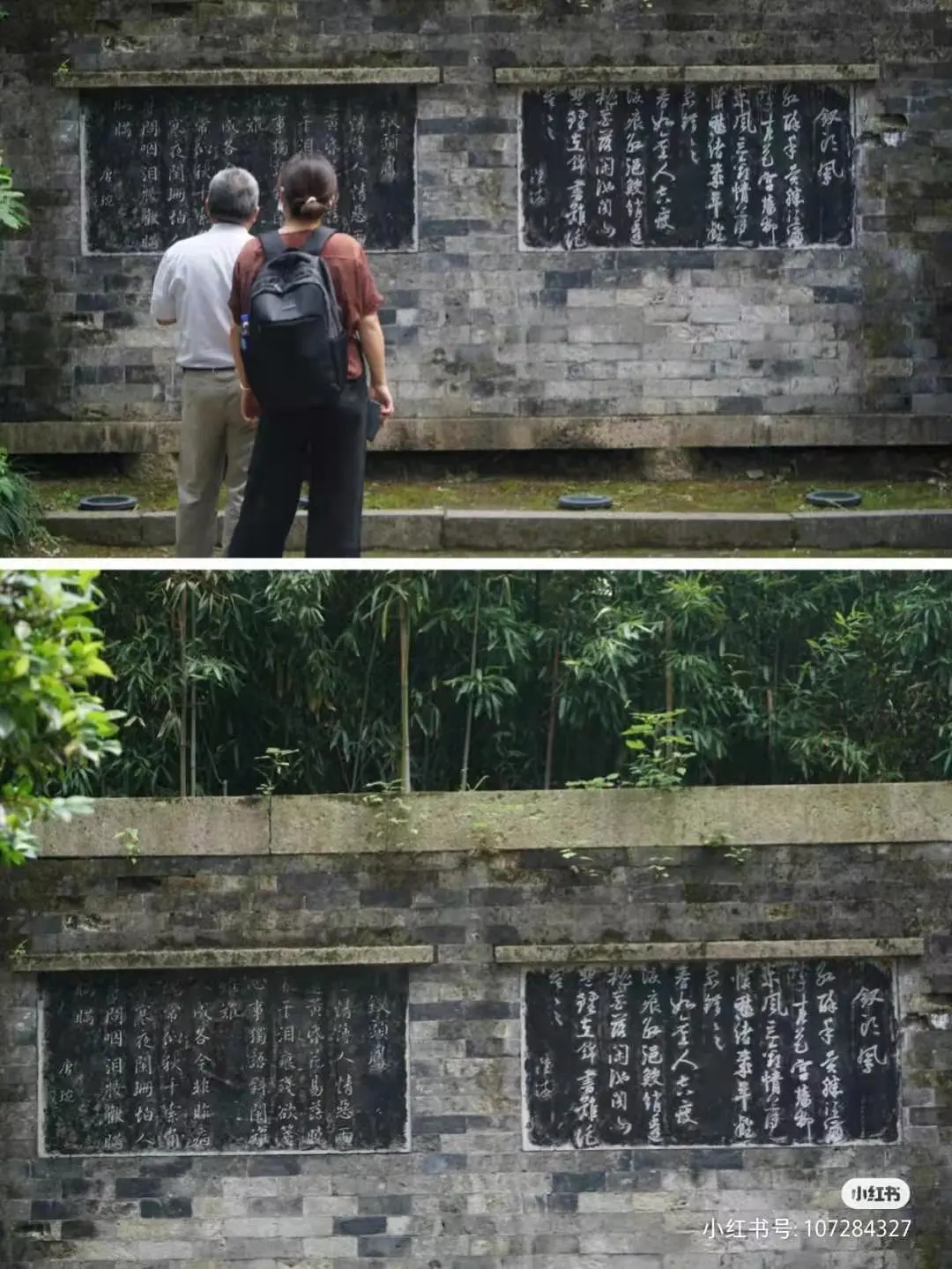 人们来沈园,多是为了凭吊陆游和唐琬的爱情故事,陆游每次路过沈园都要题诗,从“红酥手,黄縢酒,满城春色宫墙柳”,到“也信美人终作土,不堪幽梦太匆匆”,如今这些诗文就被铭刻在石碑上和两人的爱情一起流传了百年。