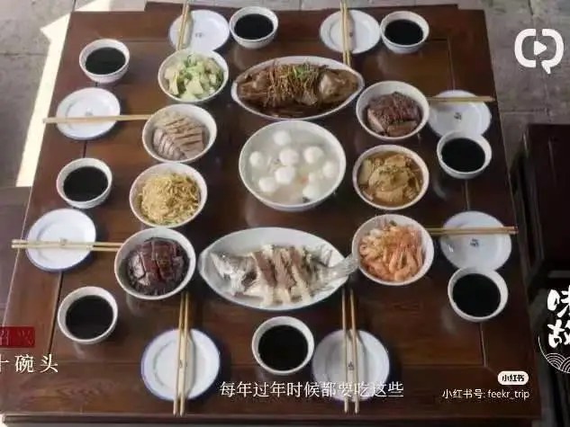 “十碗头”是以前绍兴人用来招待客人的菜式,十道菜用十个碗来盛,取其“十全十美”的寓意。