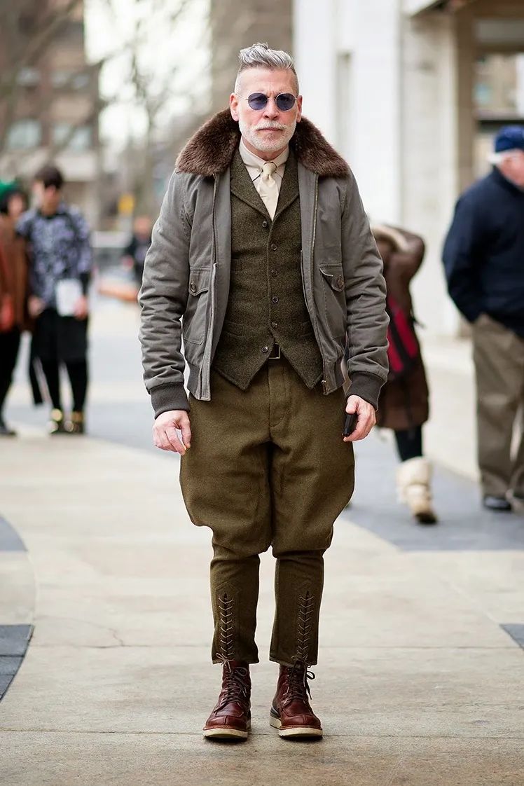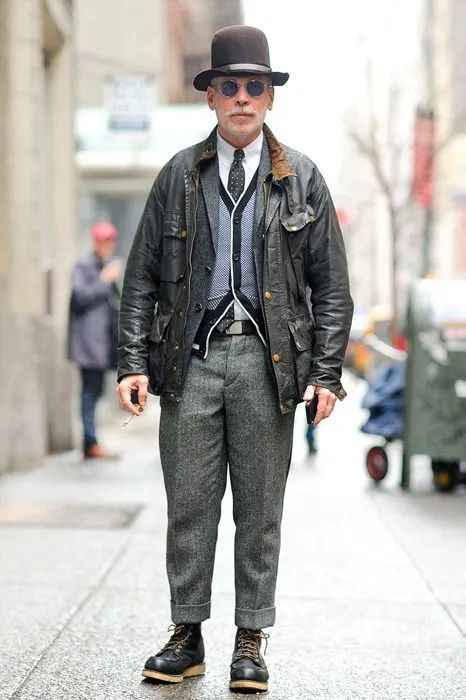 工装靴本身的气质比较硬汉,所以尤其适合搭配一些偏硬朗粗犷的单品。飞行员夹克、皮衣、工装,和工装靴搭配在一起会显得格外有型。