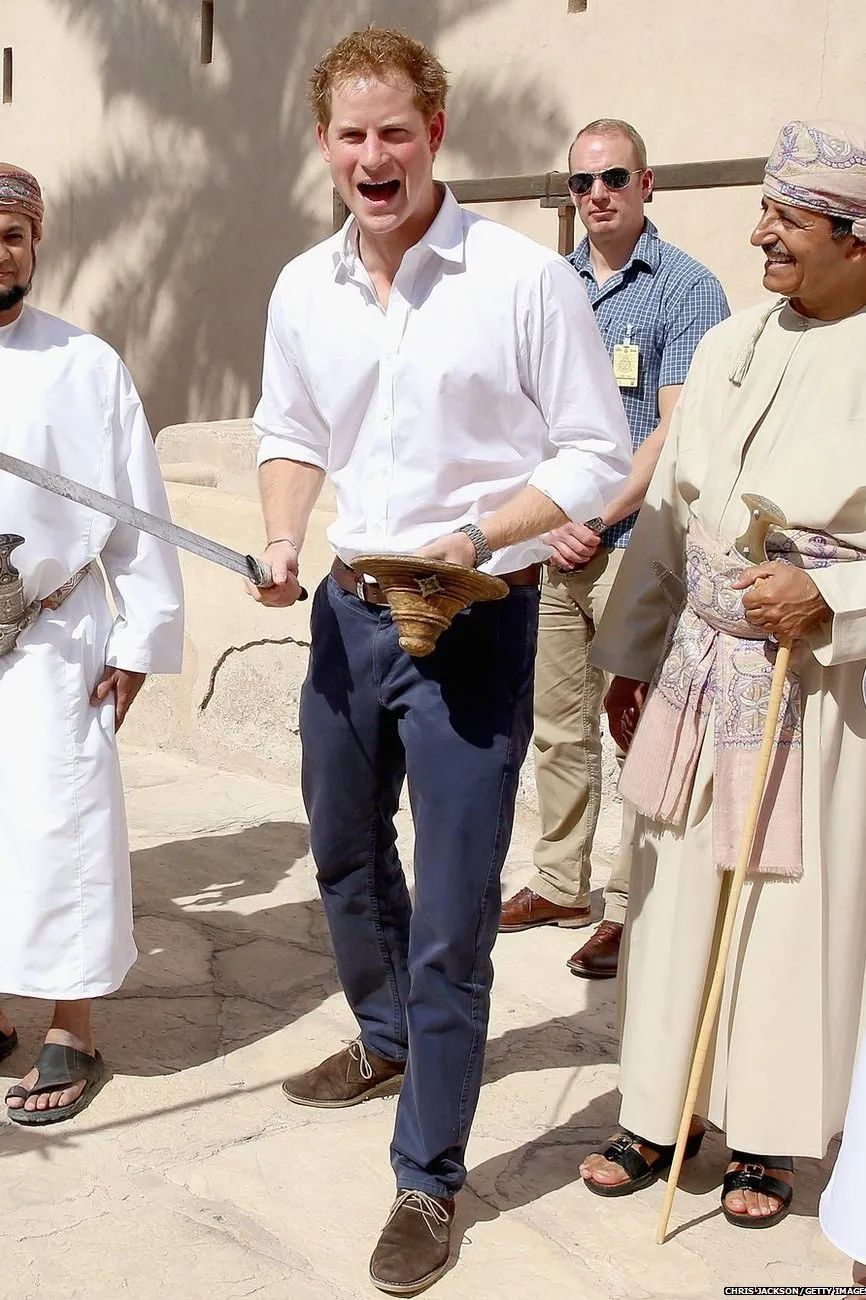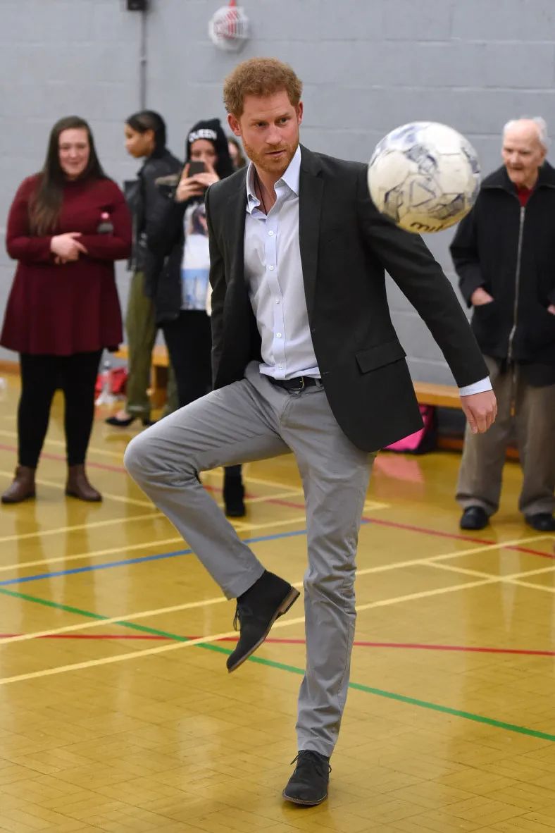 哈里王子不但穿着沙漠靴出访国外,甚至还能穿着它秀一把足球技术。