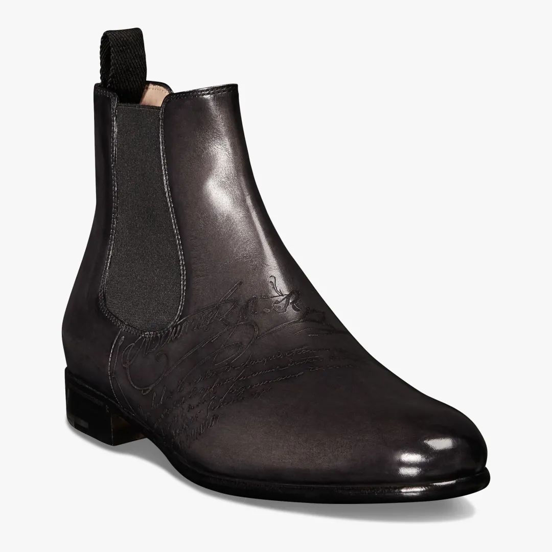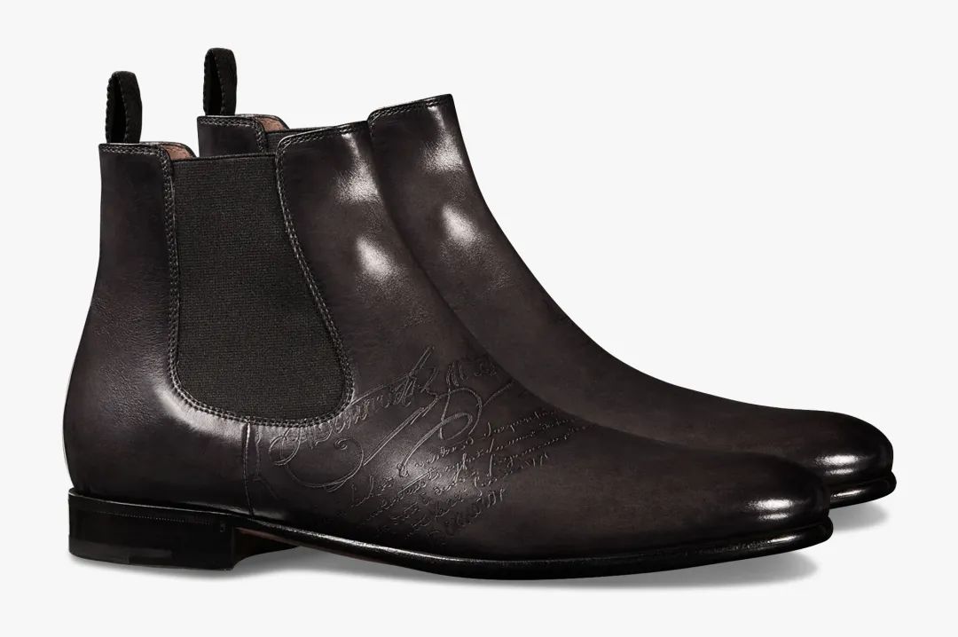 想挑一双正统的经典光面皮质切尔西靴,可以选择法国超高端皮具品牌 Berluti。其出品的靴型最为经典,而且皮革质感考究,属于买一双穿十年都不过时的款式。