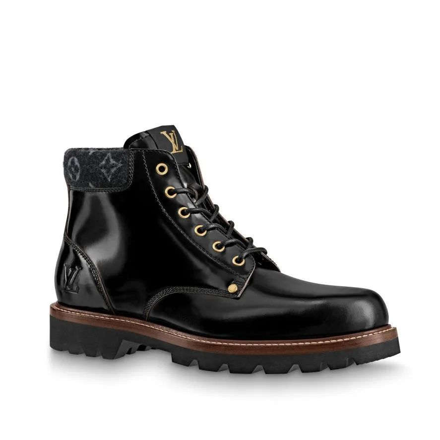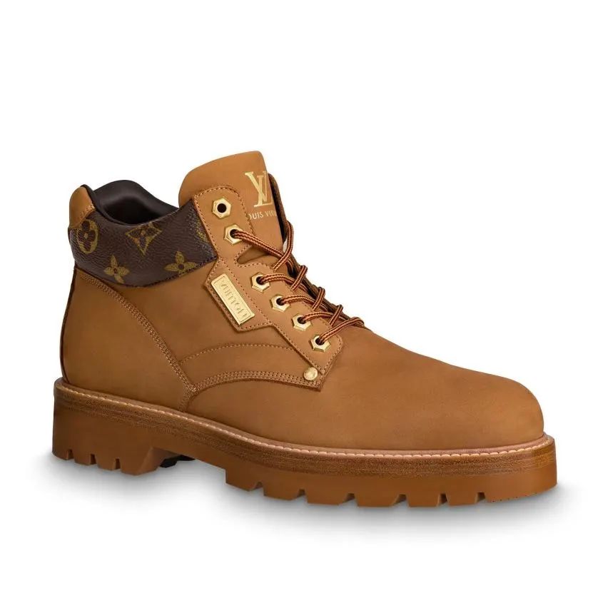 比如 LV 推出的 Oberkampf 工装靴,虽然保留了工装靴的整体廓形, 但靴型更精致修长,鞋底也没有厚到夸张。后跟加入 Monogram 点缀,给工装靴加入了几分经典优雅的味道。