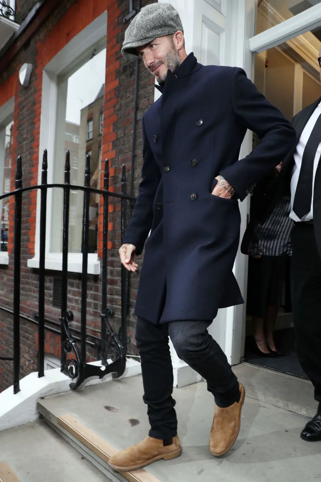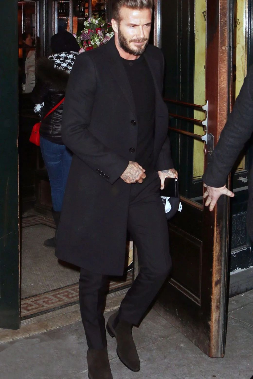 冬天把西装换成大衣也毫不违和,贝克汉姆每年秋冬造型都少不了切尔西靴。
