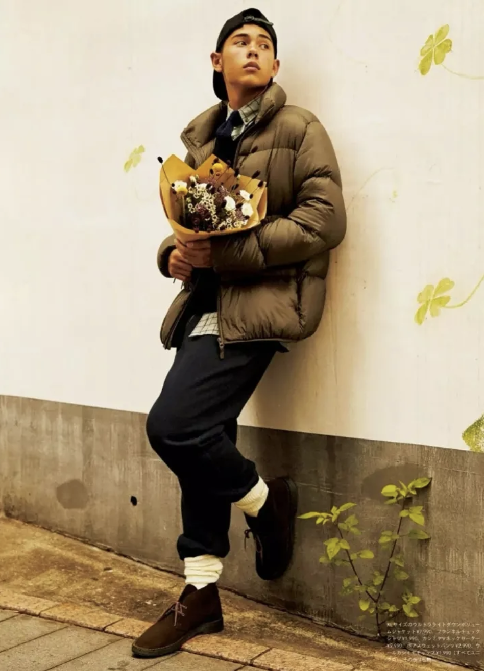 沙漠靴也是一款“老少皆宜”、不挑场合的单品,通勤时用它搭配商务休闲装,非工作场合年轻男士还可以用它搭配工装、牛仔裤,打造时下流行的阿美咔叽风(日本人眼中的美式风格)。