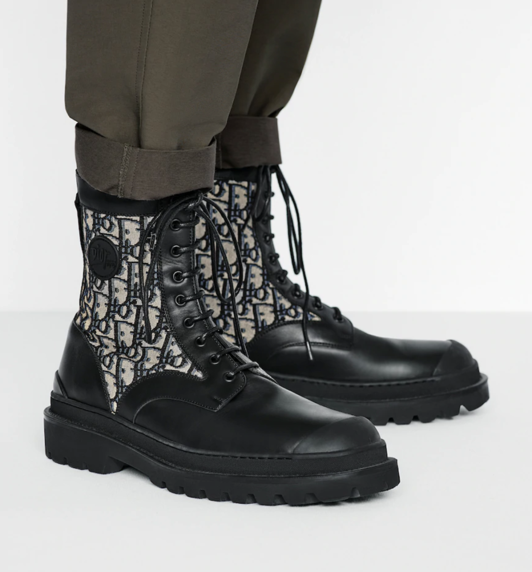 除了及踝款之外,Explorer 系列中还有一款靴筒更高的款式,更有军装风的酷感,亮点在于侧面大面积拼接 Oblique 印花,很多男装博主今年都上脚了这双极具潮流感的改良工装靴。