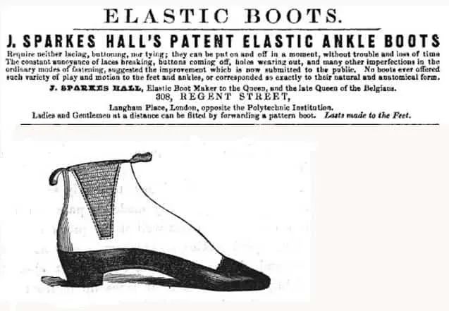 切尔西靴最早由英国维多利亚女王的御用鞋匠 J.Sparkes-Hall 发明,当时被称为 Paddock boots,没有鞋带并且高度刚好到脚踝的设计,最初是为了方便英女王参加马术运动时穿脱。