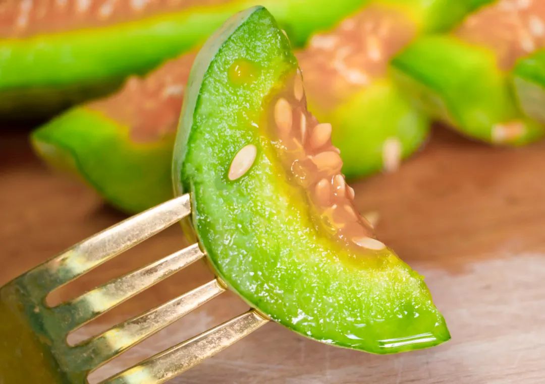 现在的它就可以上市,那可是经历了 4 季的头茬结晶啊!!青绿乳白的外衣,哈密瓜般清香,可以在水果市场独占一角!