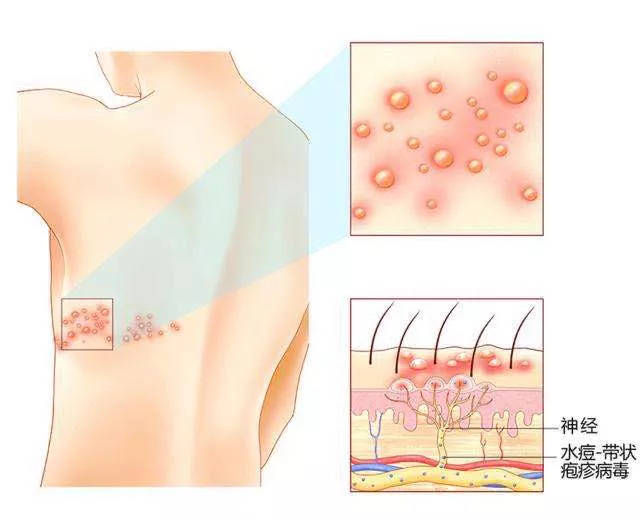 当人们的免疫功能低下时,如感冒、过度劳累、或患恶性肿瘤等疾病时,病毒就容易被激发,不仅在皮肤上长出疱疹,而且会使神经发炎坏死,产生剧烈疼痛。带状疱疹的皮肤表现多持续2-3周,然而部分患者会遗留神经痛。这是一种非常痛苦且顽固的后遗症,多呈烧灼样、刀割样疼痛,导致患者失眠、焦虑不安、情绪压抑甚至有自杀倾向,然而,目前尚无特效药物。