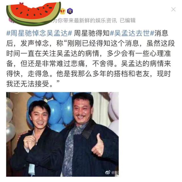 达叔去世后,周星驰发声悼念:“非常的难过和悲痛,舍不得,他是我多年的搭档和老友,我还无法接受!”