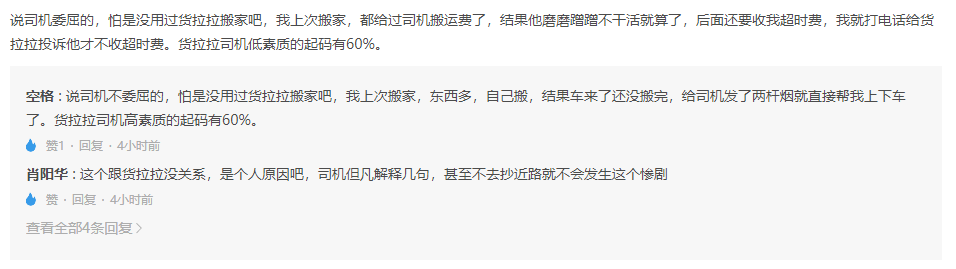 不管是货拉拉还是其他的平台(如拼车平台、顺风车、还有耳熟能详的坑多多),都能多听听外界的意见,不要沦为只是剥削员工、压榨用户来赚钱的机器。
