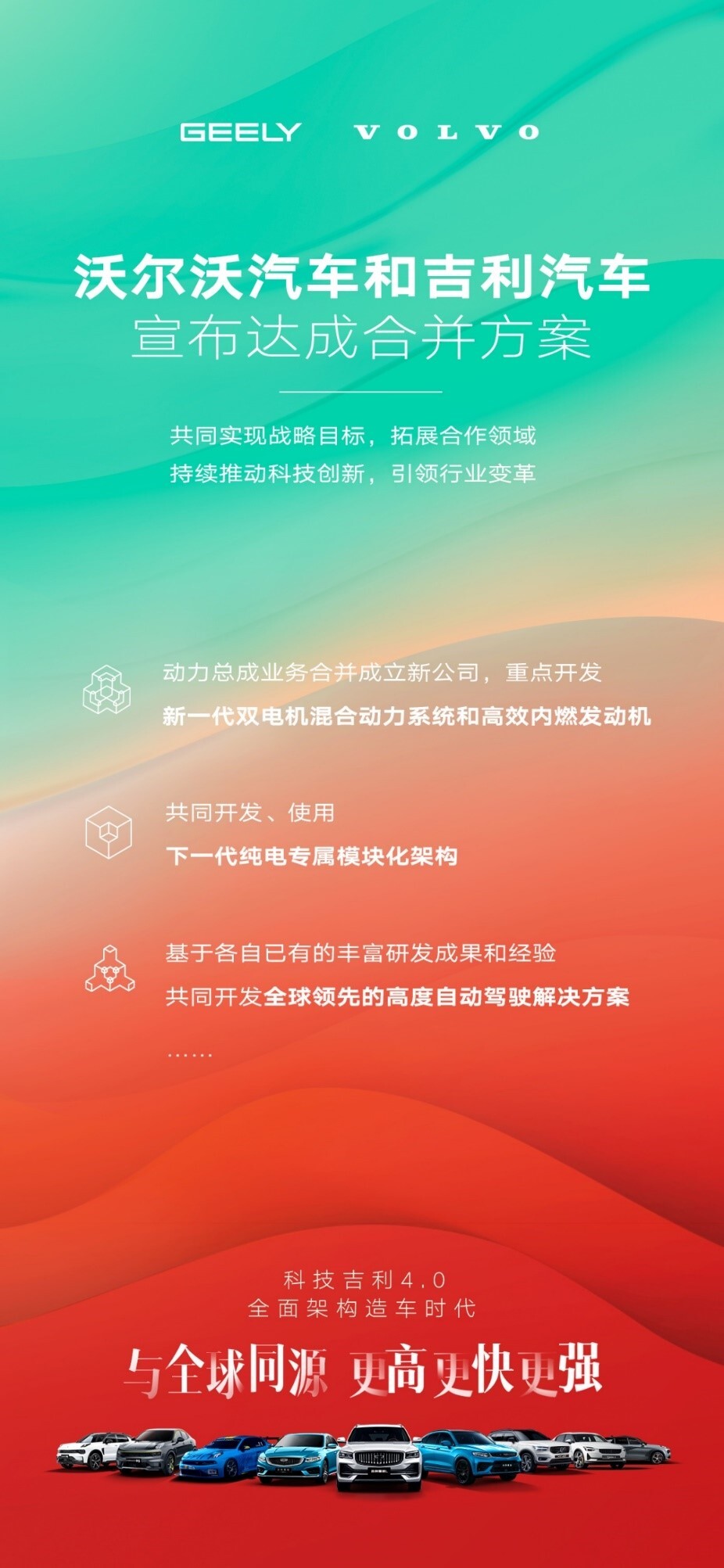 据了解,吉利汽车与沃尔沃汽车将在过去十年成功合作的基础上,发挥协同效应,继续拓展合作领域,深化汽车新四化合作,特别是以股权合并形式将动力总成业务合并成立新公司,重点开发新一代双电机混合动力系统和高效内燃发动机,与全球同源,全方位为包括星越L在内的吉利品牌车型赋能。
