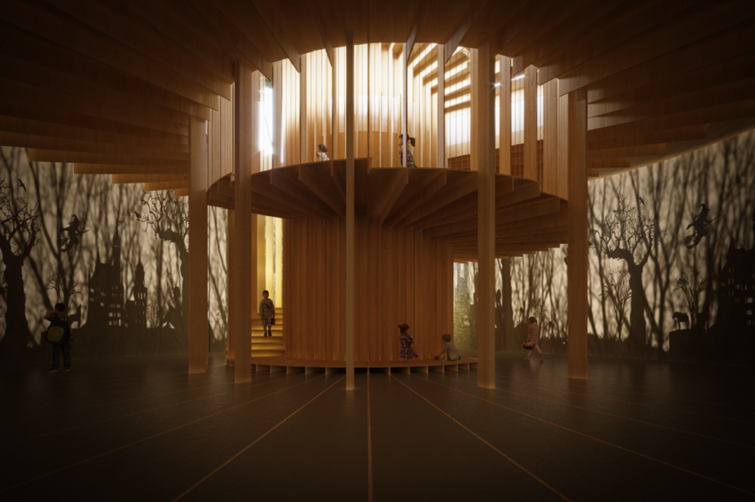 “在安徒生的故事里,现实和想象的界限是被模糊的。为了把这一点贯彻到建筑中,我们采用了圆形,即去中心化的设计策略。”