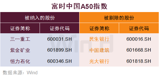 此次,三一重工、紫金矿业、恒力石化被新增纳入富时中国A50指数,截至3月3日收盘,这三只股票年初至今涨幅分别为23.64%、32.62%、32.11%。剔除的股票包括民生银行、中国建筑和光大银行。