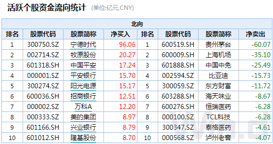 周三北向资金净买入90.1亿元。中国平安、京东方A、招商银行分别获净买入10.42亿元、6.76亿元、5.97亿元。贵州茅台净卖出额居首,金额为2.82亿元。