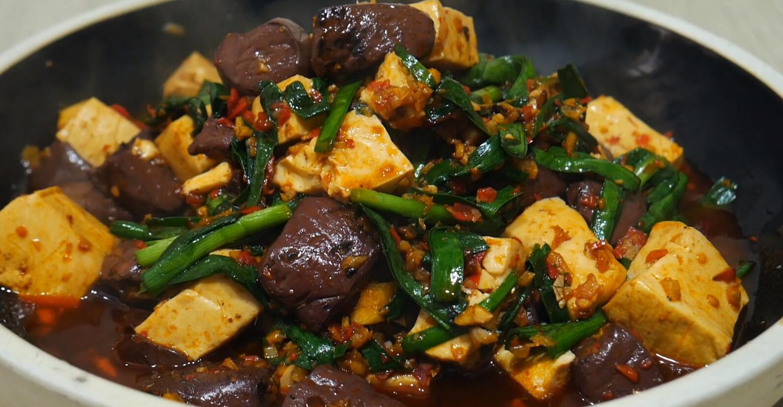 今天要跟大家分享的是一道“双色豆腐”,双色豆腐,顾名思义就是白豆腐和血豆腐,白豆腐营养丰富,含有丰富的蛋白质以及铁、钙、磷、镁等人体必需的多种微量元素,被称为“植物肉”,非常容易被人体吸收利用。血豆腐我们选用猪血,猪血是最理想的补血食品,可以预防缺铁性贫血,我们将这两种豆腐一起烧制,营养价值翻倍,做出来的豆腐却非常入味,吃起来口感滑嫩,一起来看一看吧。