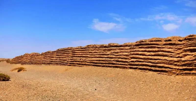 汉长城遗址位于河西走廊明代长城的北侧,其年代比嘉峪关的明长城要早一千三百多年。