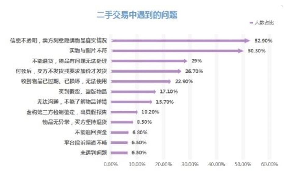 对于二手交易中遇到的问题,此前也有机构进行过专门调研。而据调研报告显示,双方消息不对称成为了买卖双方的最大弊病。