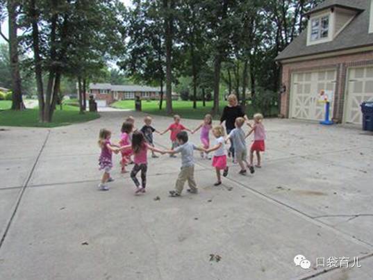 让小朋友们牵着手,一起转圈,一起坐下再站起来,家长也可以试试,要站起来还挺不容易的呢