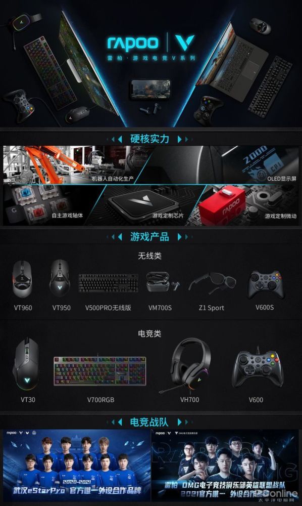 雷柏游戏外设,2008年推出首款游戏产品,迄今已成功打造高端电竞VT与游戏V两大系列,涵盖游戏鼠标、游戏键盘、游戏耳机、游戏手柄等多个品类产品。雷柏以技术研发为核心,以市场需求为指引,以用户体验为宗旨,凭借新科技、新功能、新造型、性价比优势,成功带动了游戏外设的普及浪潮。