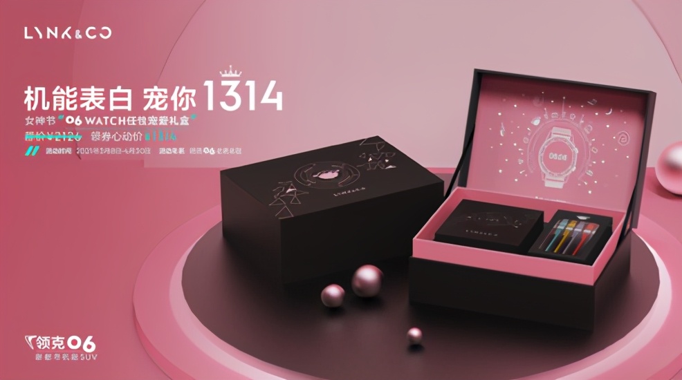 06 WATCH任性宠爱礼盒:包含06 WATCH一支+6根其他颜色的表带附件,原价2126元,在2021年3月8日-4月30日女神季活动期间,可享受限时折扣价1980元。凡是2021年4月30日前购买领克06全系任意车型并完成提车,且尚未拥有06 WATCH的用户,可使用1Co币购买价值666元06 WATCH任性宠爱抵用券,在女神季限时折扣价1980元的基础上,使用该券后以1314元购买06 WATCH任性宠爱礼盒。