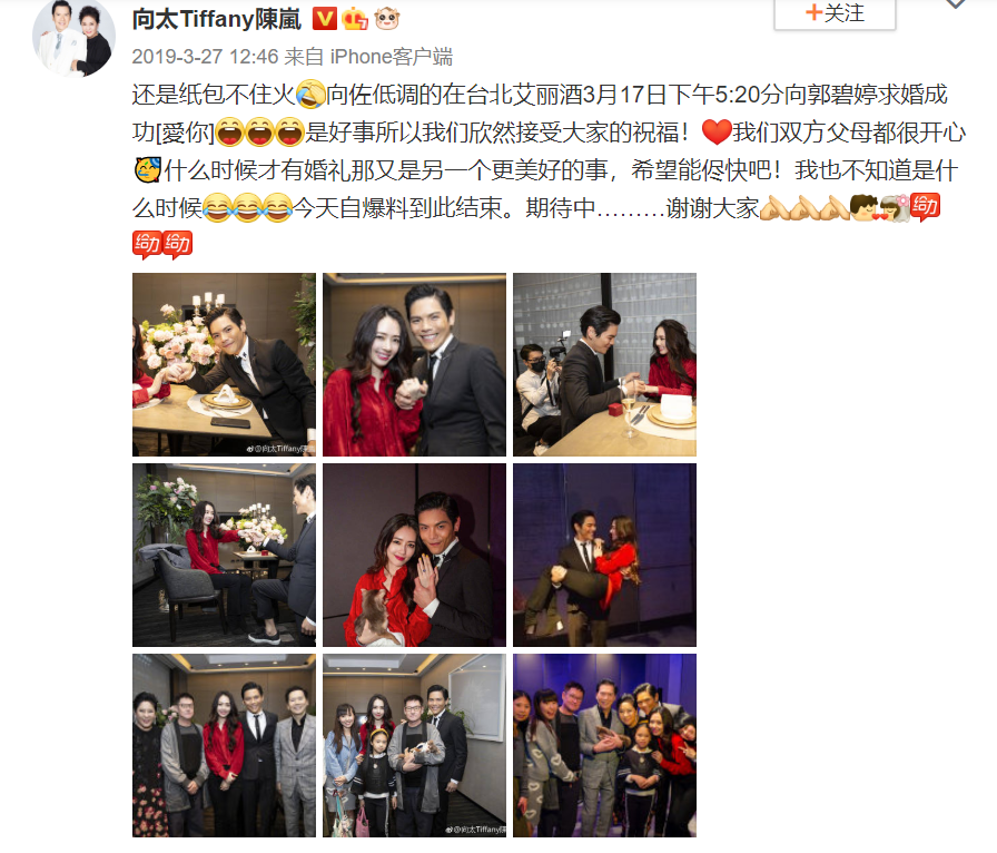 郭碧婷向佐一有什么动态,第一时间出来官宣的都是向太。