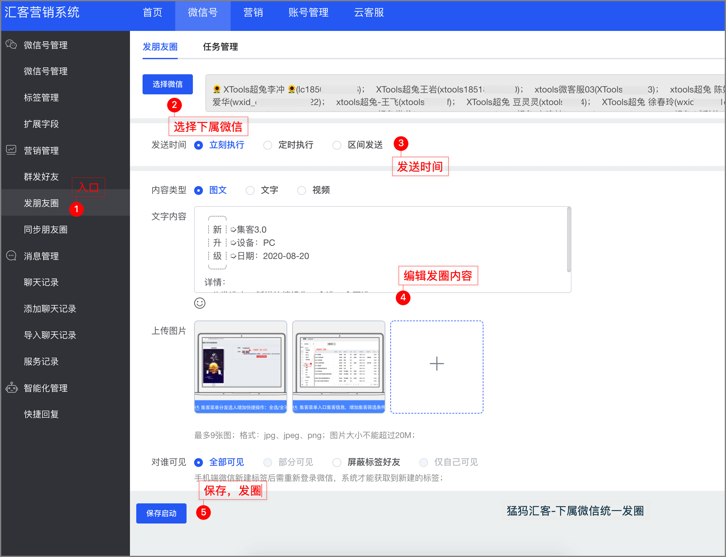 【超兔CRM:猛犸汇客-下属微信统一发圈】