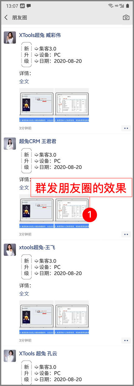 【超兔CRM:猛犸汇客-下级发圈效果】