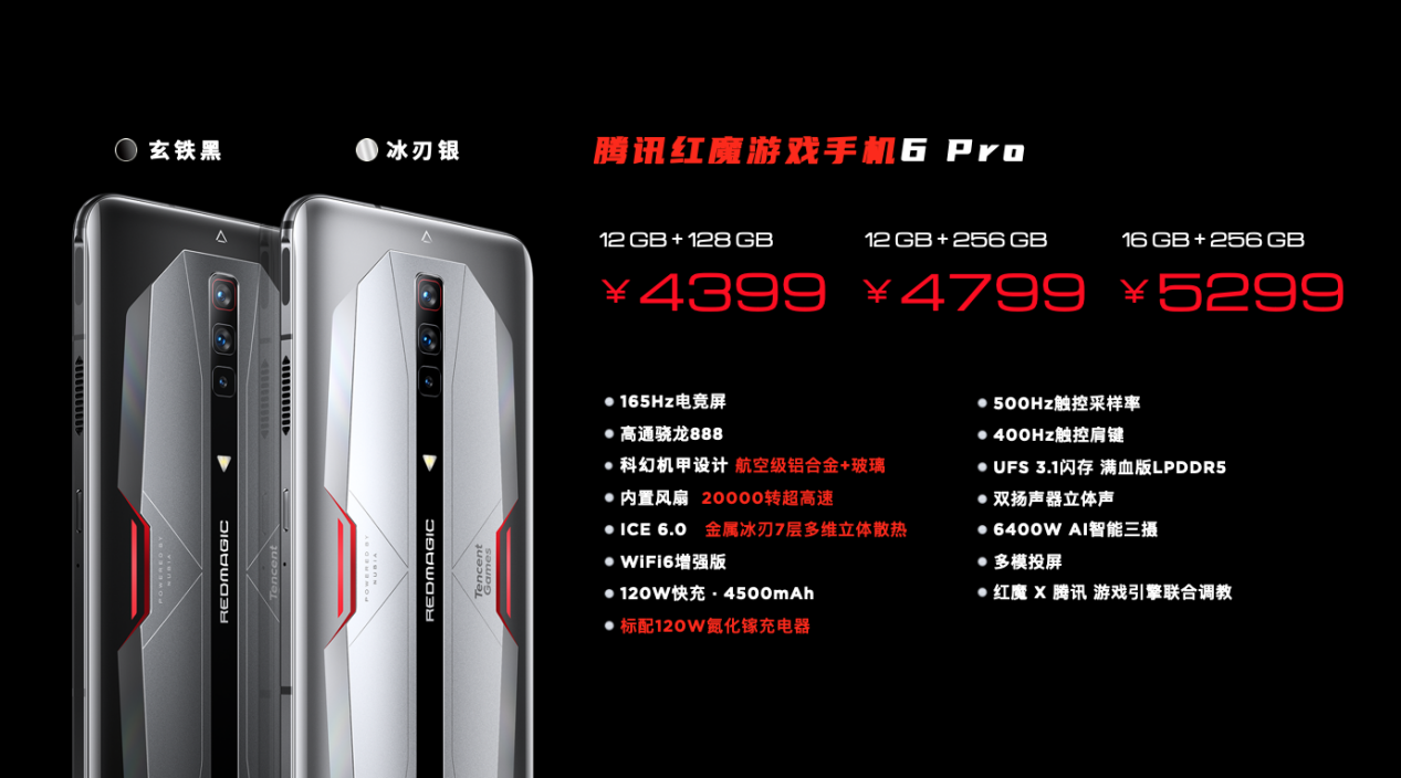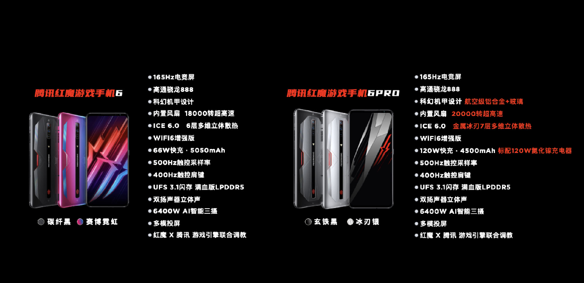 可以说,“红魔”的诞生不仅仅开创了“游戏手机”的新时代,更是定义了好的游戏手机理应作为专业电竞设备,理应以玩家需求,以游戏主机体验作为设计方向的基调。而作为游戏装备领域的探索者与引领者,红魔从未放慢继续进步的节奏。2021年3月4日,在性能、散热、优化,以及游戏生态方面进行了全面革新的腾讯红魔游戏手机6与腾讯红魔游戏手机6Pro也正式亮相,不仅如此红魔还全球首发了高达18G内存的氘峰透明版,为玩家极致的游戏体验做好充足准备。