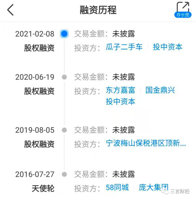 而最近一轮融资发生在上个月,投资方分别为瓜子二手车及投中资本。