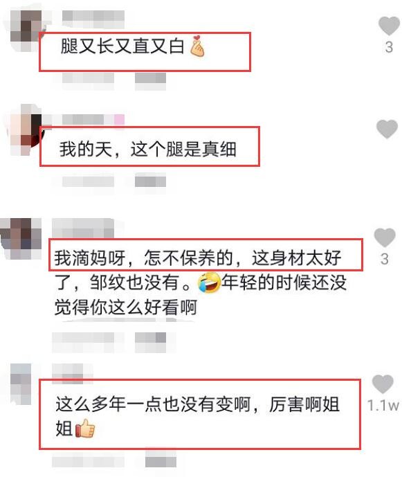网友也表示怎么这么多年过去陈紫函一点都不老的,纷纷追问她是怎么保养的,不仅脸上一点皱纹都没有,身材更是好到没话说,一双大长腿又细又长又直,实在是太养眼了。