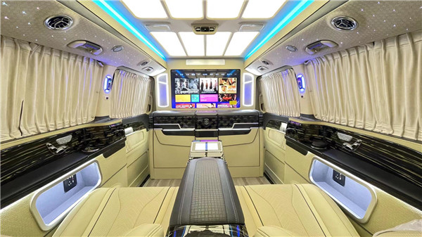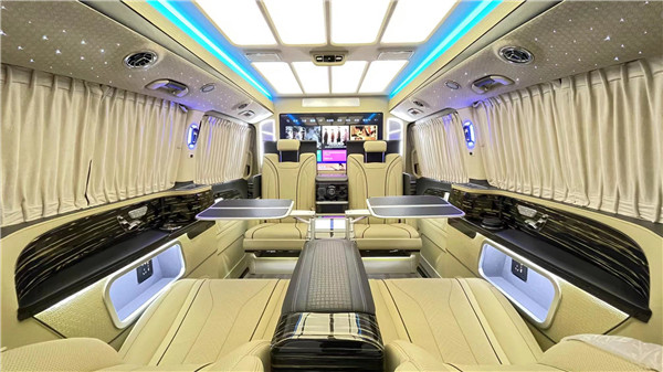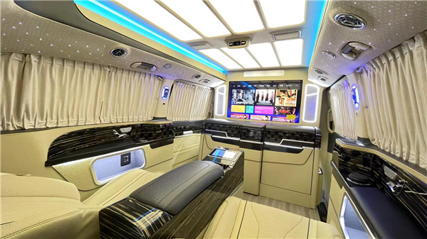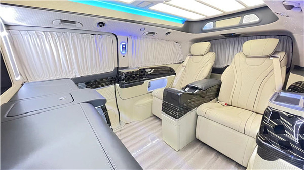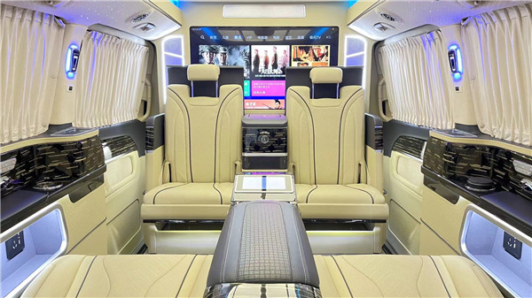 定制航空座椅,集通风、加热、按摩于一体六座商务车。这8项电动调节,很是给力。后面可以看到进口柏林之声音响,给你带来好的听觉享受!两侧隐私遮光窗帘,一键开启。很好的保证了个人的隐私。