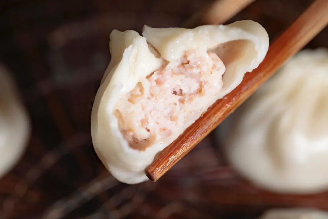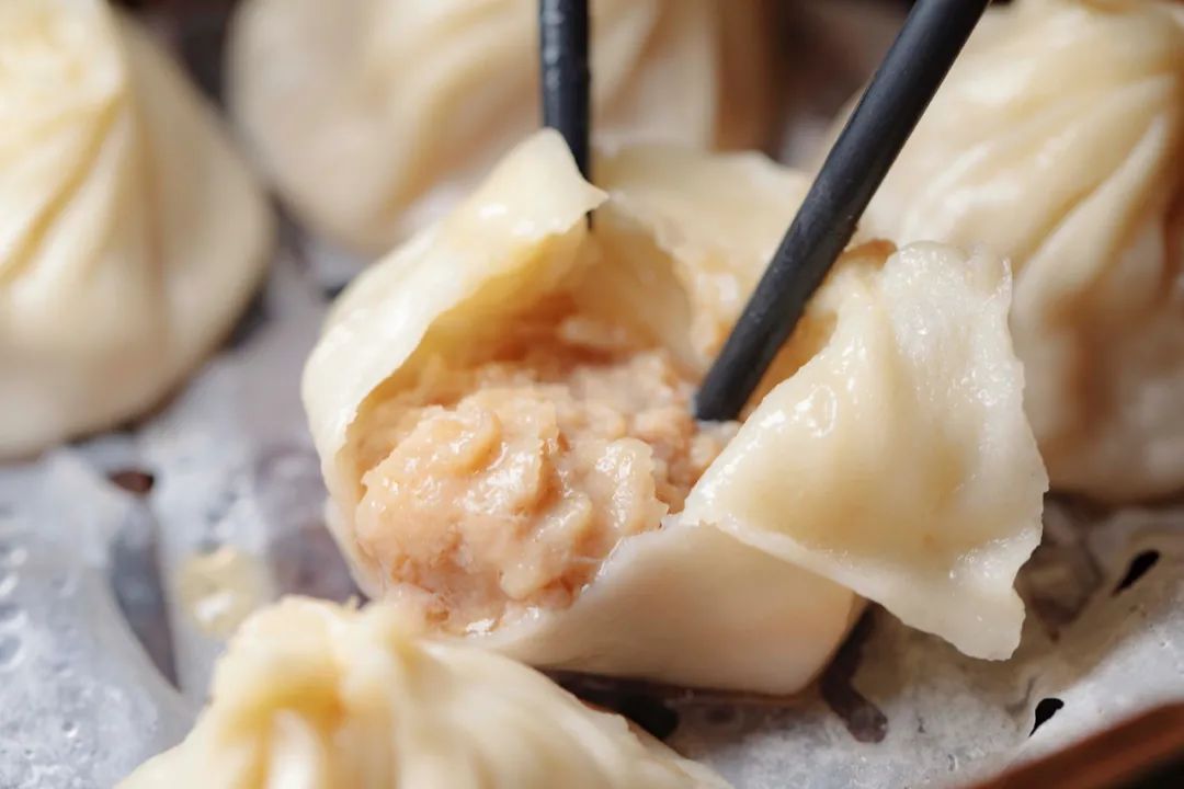 馅料极少或不加酱油调味,汤汁清澈,糖也几乎不放,吃口咸鲜,不似无锡小笼酱香味甜。