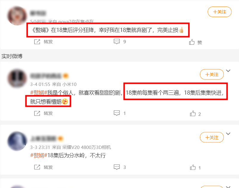 从观众的反应来看,前18集口碑爆棚,称得上好评如潮。但18集后口碑有所下滑,“看不下去”、“准备弃剧”的声音不绝于耳。