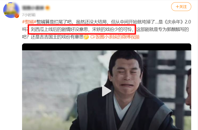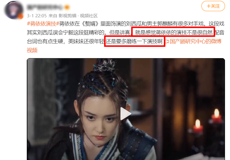 此外,刘西瓜在霖安部分的上场也颇多争议。主要是质疑蒋依依的演技浮夸之类。