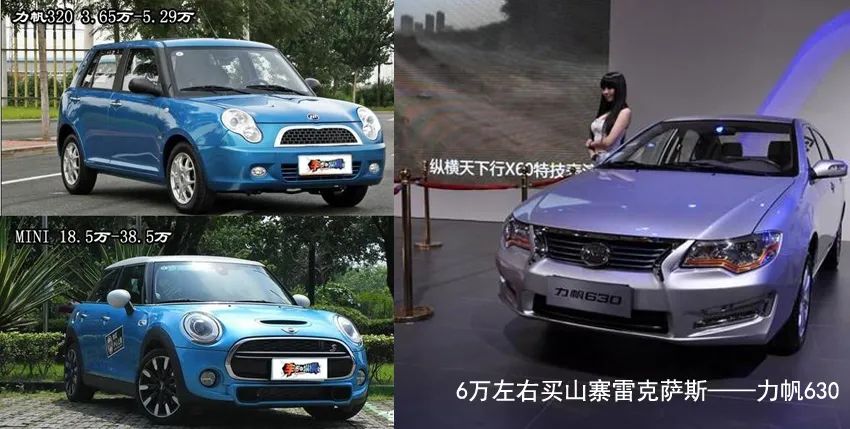 力帆320山寨Mini Cooper,力帆620山寨宝马3系,力帆X80山寨汉兰达……