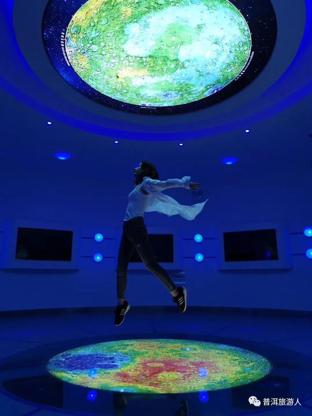 如果你是拍照狂魔,建议你穿一件飘逸的白色长衫(裙),在墨江天文馆的“月球表面”原地起跳,像图中的小姐姐一样抓拍一张奔月照,“啊”!真仙!
